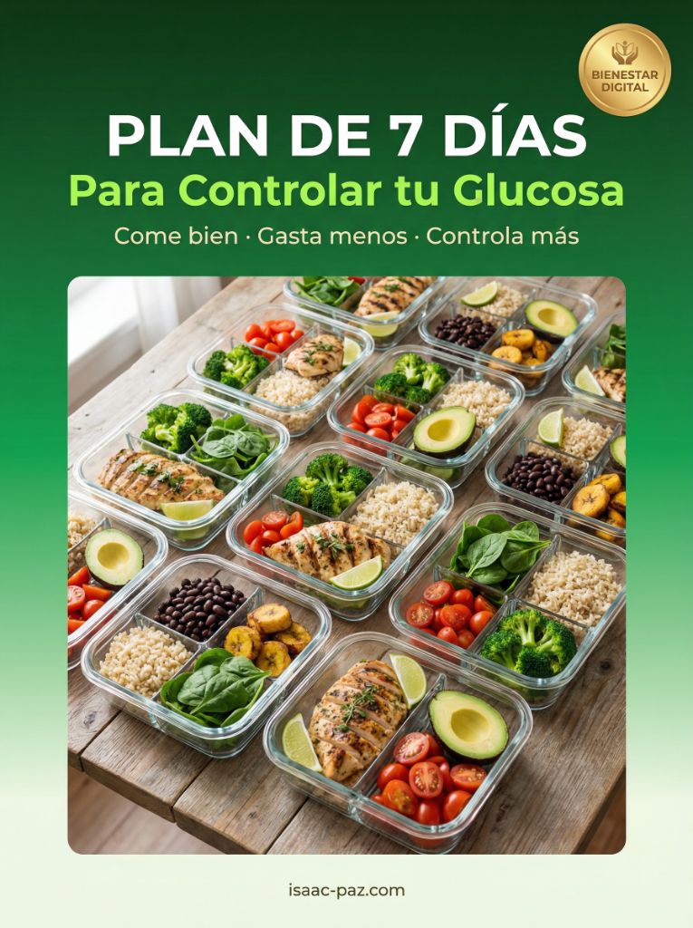 No se trata de prohibir alimentos — se trata de elegir cuánto, cuándo y de qué tipo. Esta guía de 18 páginas basada en ADA 2025 y ALAD 2024 te enseña el Método del Plato, el Índice Glucémico, la Carga Glucémica y un plan semanal con recetas latinoamericanas accesibles para controlar tu glucosa sin renunciar al sabor.